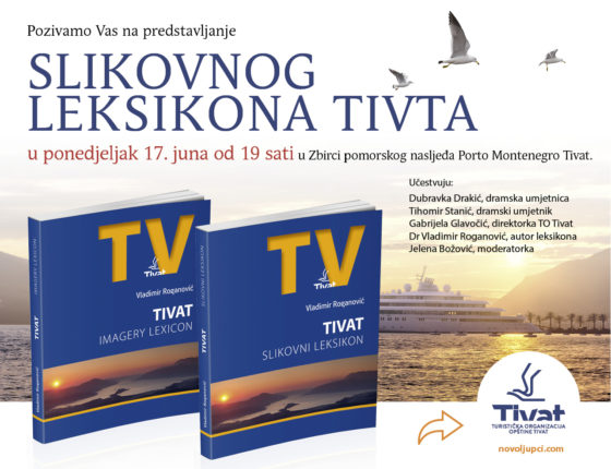 Turistička organizacija Tivta obavještava da će se u ponedeljak, 17. juna u 19 sati u Zbirci pomorskog nasljeđa Porto Montenegro Tivat održati promocija prvog Slikovnog leksikona Tivta. Govoriće autor Dr Vladimir Roganović sa gostima.